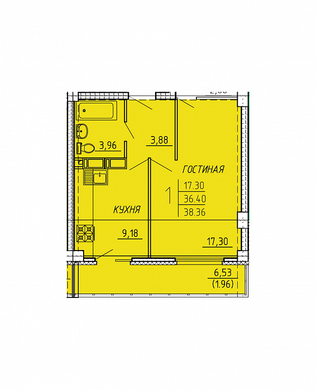 2-комнатная, 55.28 м²